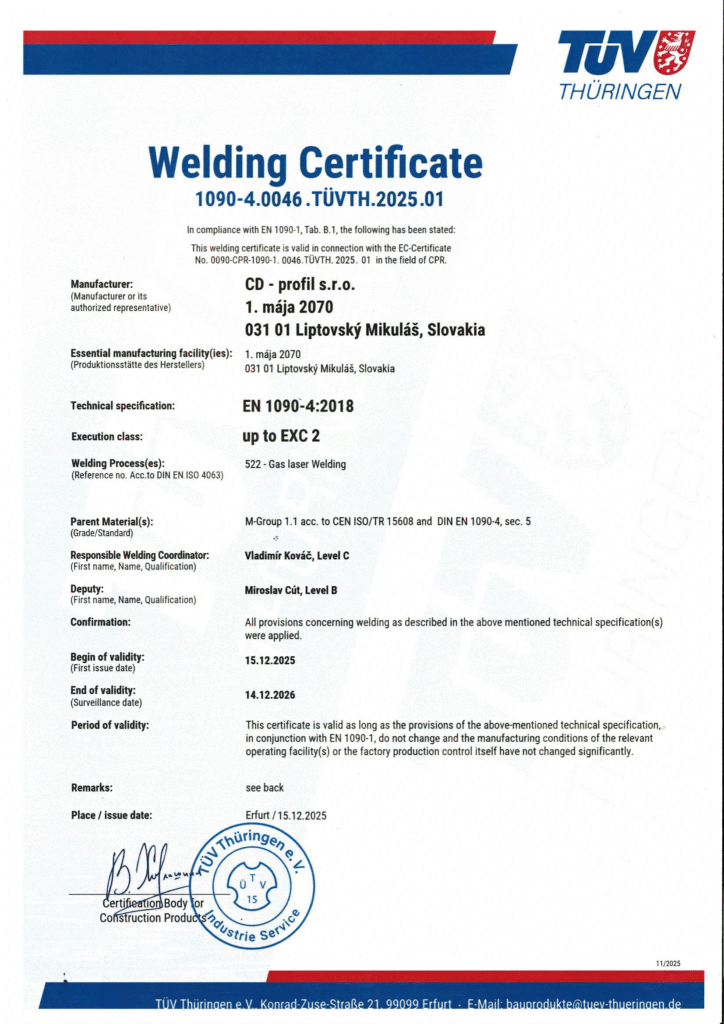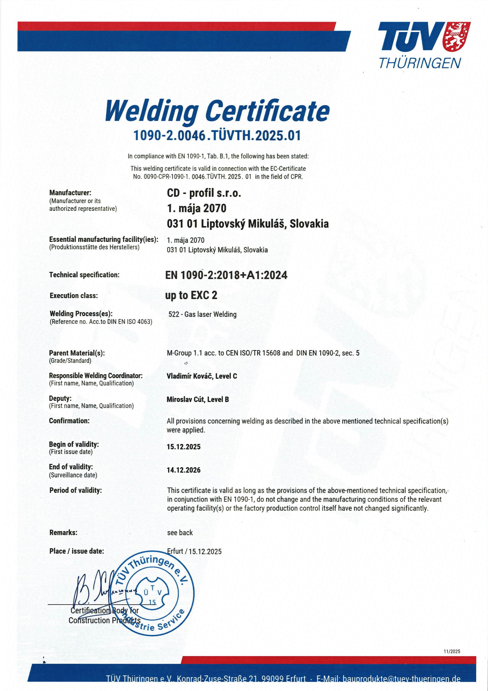 The certification was granted by TÜV Thüringen, Erfurt, Germany.